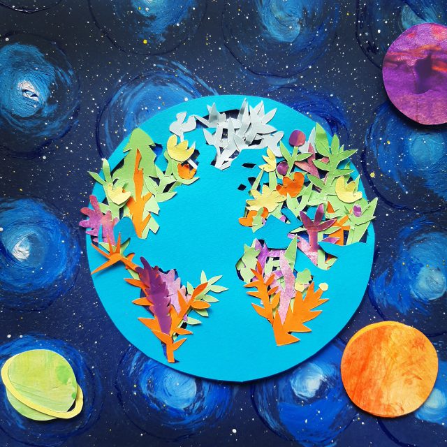 Crearemos un gran mural colaborativo que representará cómo sería vivir en un planeta cuidado, responsable y lleno de creatividad.